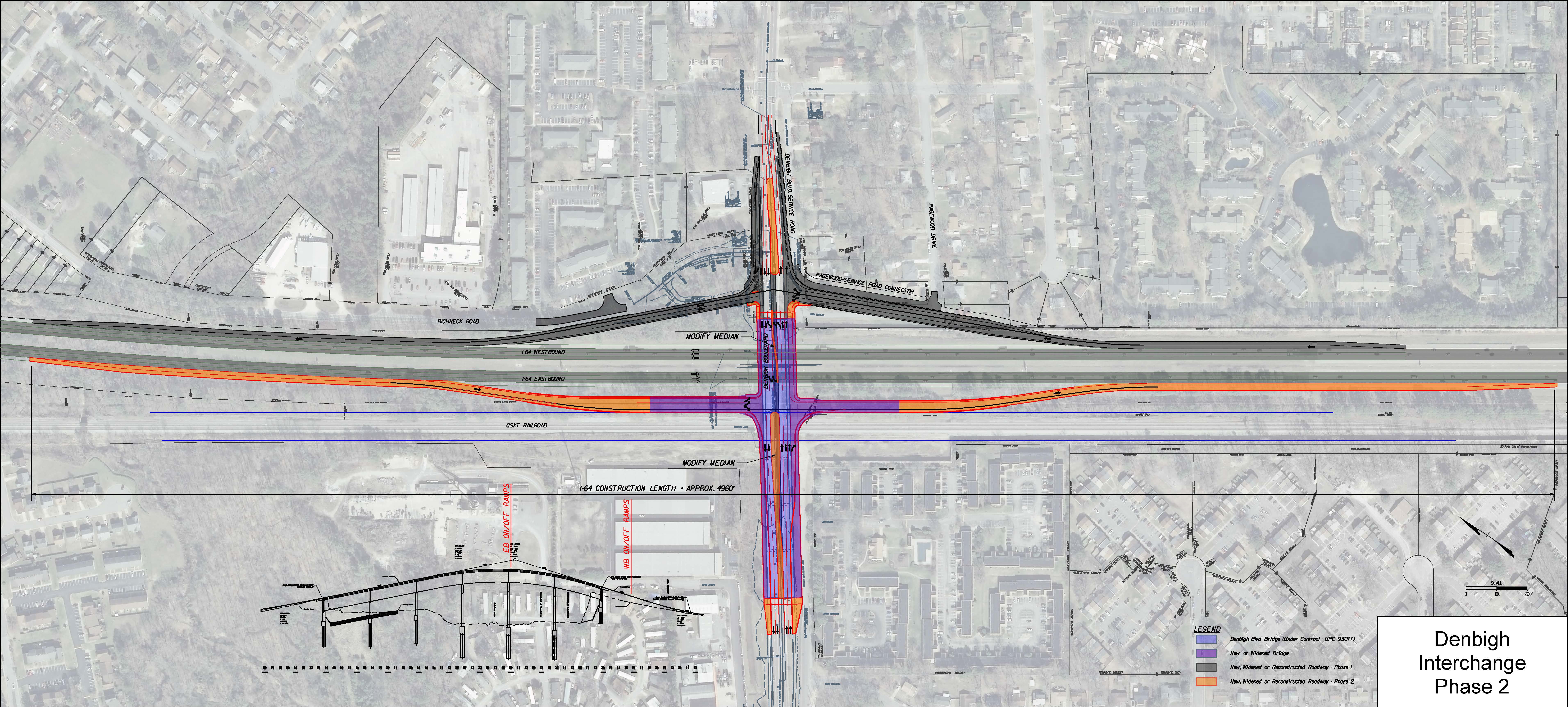 Phase 2 of the project will construct the eastbound I-64 access ramps as well as the widening of the Denbigh Boulevard Bridge over I-64 to accommodate turn lanes.